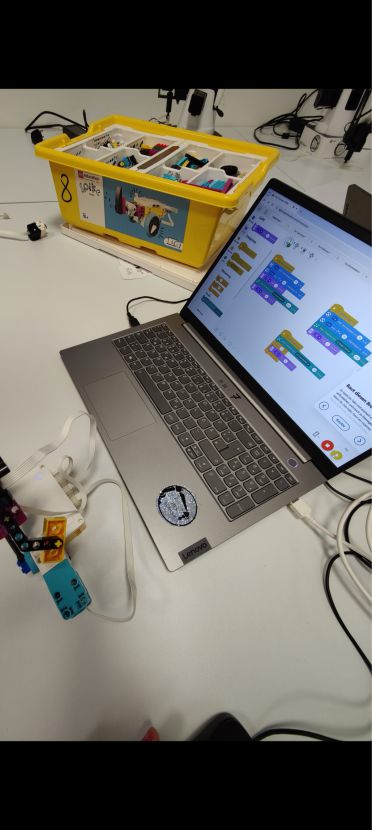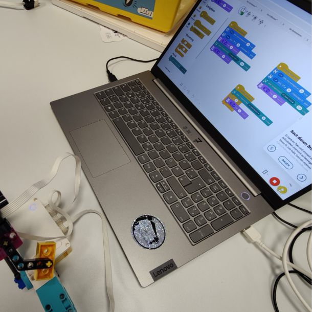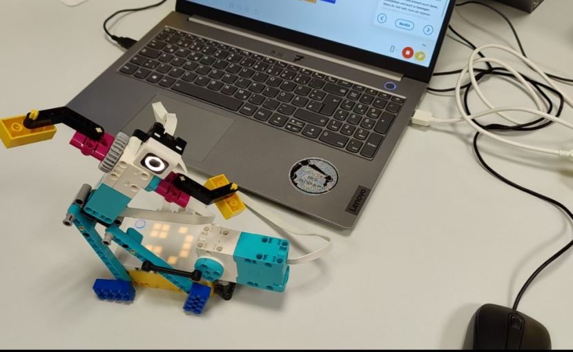 Zu Beginn lernten die Schülerinnen und Schüler die wichtigsten Bauteile der Lego-Spike-Sets kennen und erfuhren, wie blockbasierte Programme grundsätzlich aufgebaut sind. Anschließend durften die Kinder mithilfe von Schritt-für-Schritt-Anleitungen eigene Roboter konstruieren. Dabei entstanden unter anderem ein Spurhalteassistent, der mithilfe des Farbsensors einer Linie folgen konnte, sowie ein tanzender Roboter.