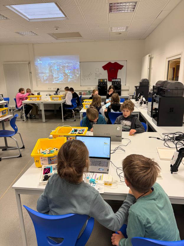 Am 07.11.2025 besuchte uns eine 3. Klasse der Grundschule Hogenkamp, um einen ersten Einblick in die Welt der Robotik mit Lego Spike Education zu erhalten.