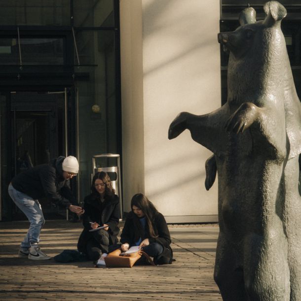 Aber auch Oldenburg bietet anschauliche Werke, die aus nächster Nähe erfahren werden konnten - hier die „Drei Bären“ des Bildhauers Paul Halbhuber - passend zum Semesterthema, das mit Fokus auf Skulptur unter anderem die Darstellung von Tieren in Beziehung zum Menschen in den Blick nimmt.