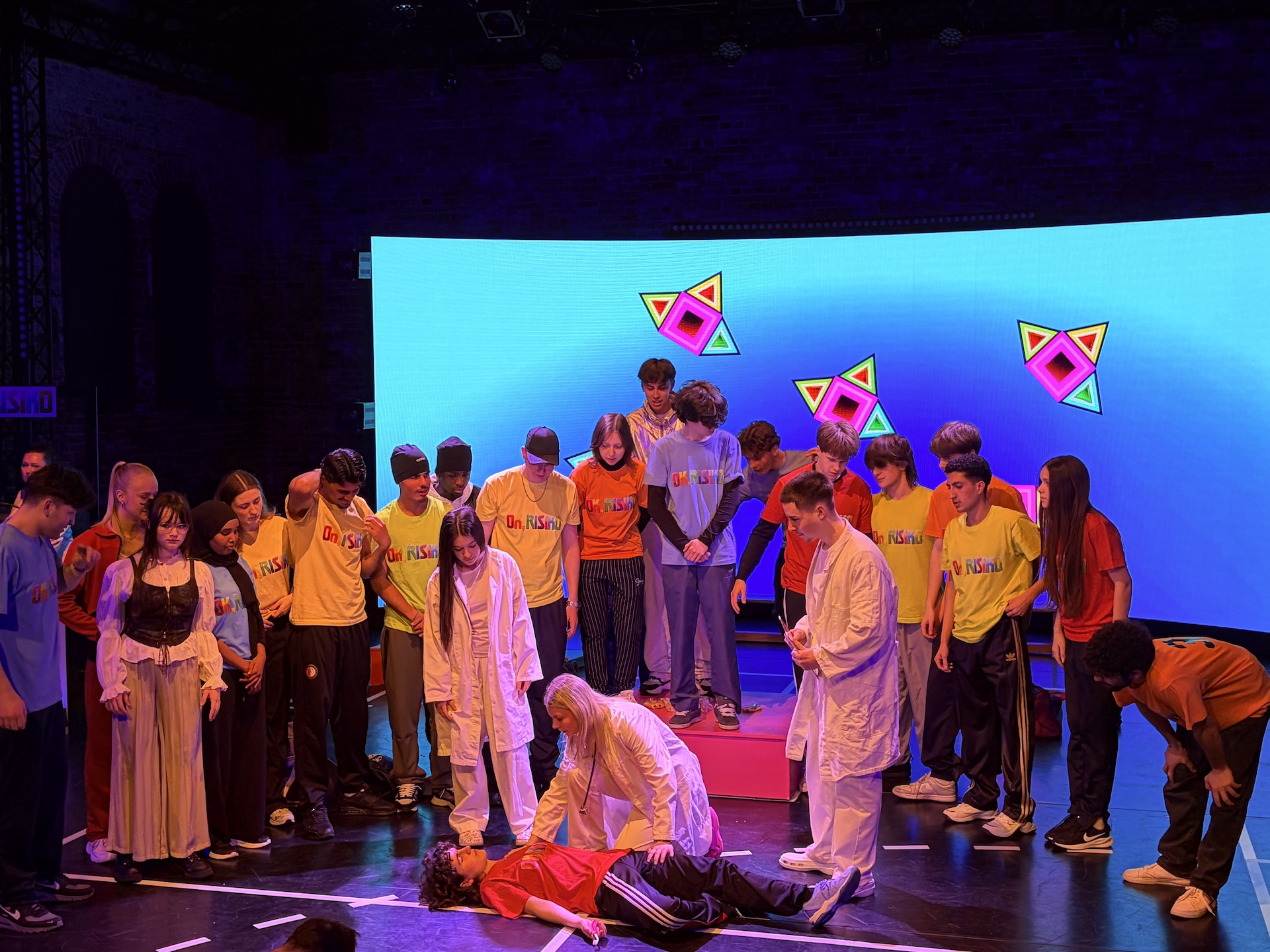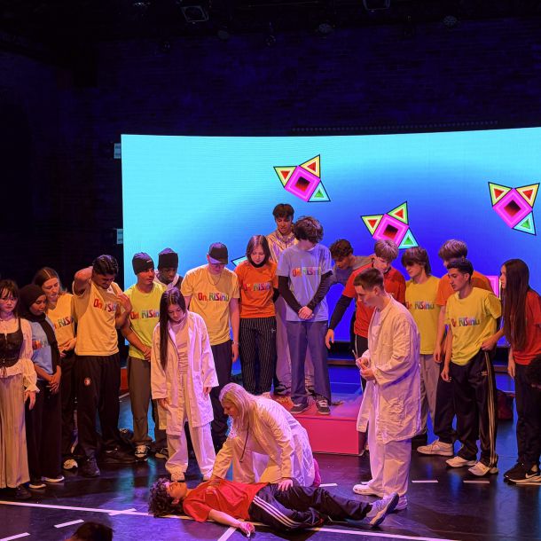 OK, RISIKO! heißt das Theaterstück, welches der DS-Kurs von Frau Schlalos in Kooperation mit dem Staatstheater und einer Sprachlernklasse der BBS Haarentor auf die Bühne gebracht hat. Knapp ein halbes Jahr haben wir Jugendlichen der 11. Klassen der HLS und der BBS uns jeden Mittwoch im Staatstheater getroffen und gemeinsam unter der Leitung der Theaterpädagoginnen Lina Joost-Krüger und Liliane Bauer das Stück mitentwickelt. Unsere Antworten auf verschiedene Fragen, welche wir während der Probenzeit bekommen haben, arbeiteten Lina und Liliane in das Theaterstück ein. Während unserer intensiven Probenwoche vom 23.02. bis zum 01.03 haben wir die Möglichkeit bekommen das Stück anzupassen und eigene Ideen und Erfahrungen einzubringen.