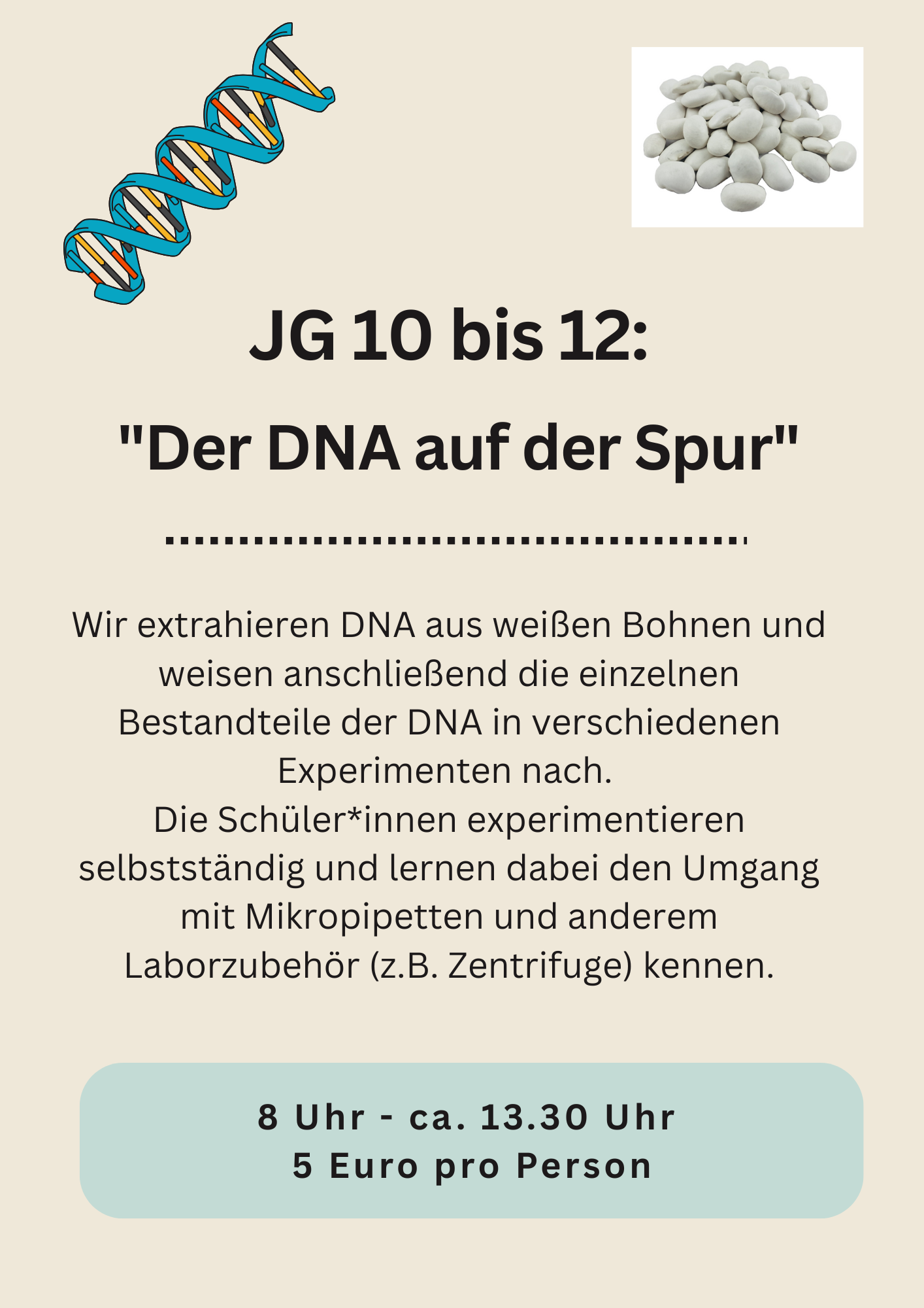 Wie bieten an der Helene-Lange-Schule praktische Labortage zu molekularbiologischen Themengebieten an.