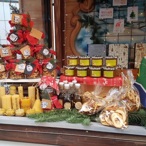 Wochenlang wurde fleißig vorbereitet. Weihnachtskarten wurden gemalt, Sterne gebastelt und verschiedenste hochwertige Dekoartikel hergestellt. Auch der Apfelsaft von lokalen Streuobstwiesen, der im Herbst unter tatkräftiger Mithilfe der AG gepresst wurde, war im Angebot. Die Bienen-AG und die Schülerfirma "Helene selbst gemacht" steuerten weitere Produkte bei. Das Ergebnis konnte sich sehen lassen: Ein stimmungsvoller und einladender Verkaufsstand entstand, der Besucherinnen und Besucher anzog.