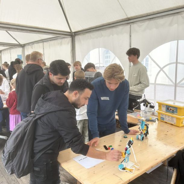 Der Tag war lang und ereignisreich. Schon am Donnerstag begann die Vorbereitung mit dem Einpacken der Technik. Am Freitagmorgen um 8 Uhr traf sich das Robotik-Team zum Aufbau am Stand. Nach einem intensiven Tag, an dem die Schülerinnen und Schüler ihre Projekte voller Begeisterung vorstellten, wurde um 16 Uhr alles wieder eingepackt, zurück an die Schule gebracht und im Robotiklabor verstaut.
