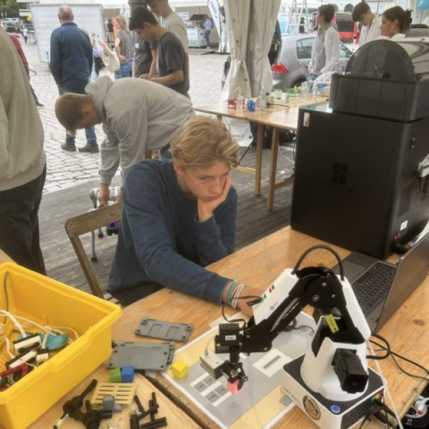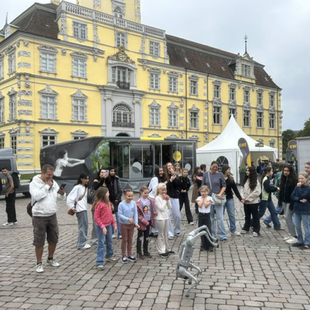 Am 19. August 2025 fand auf dem Schlossplatz das Ahoi-MINT Festival statt – wir waren mittendrin! Die Jungs aus der IdeenExpo-AG präsentierten dort ihre spannenden Projekte und sorgten für großes Interesse bei den Besucherinnen und Besuchern.