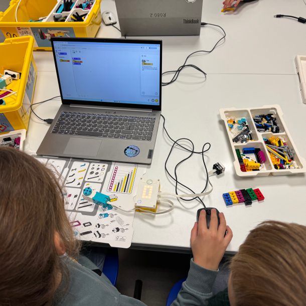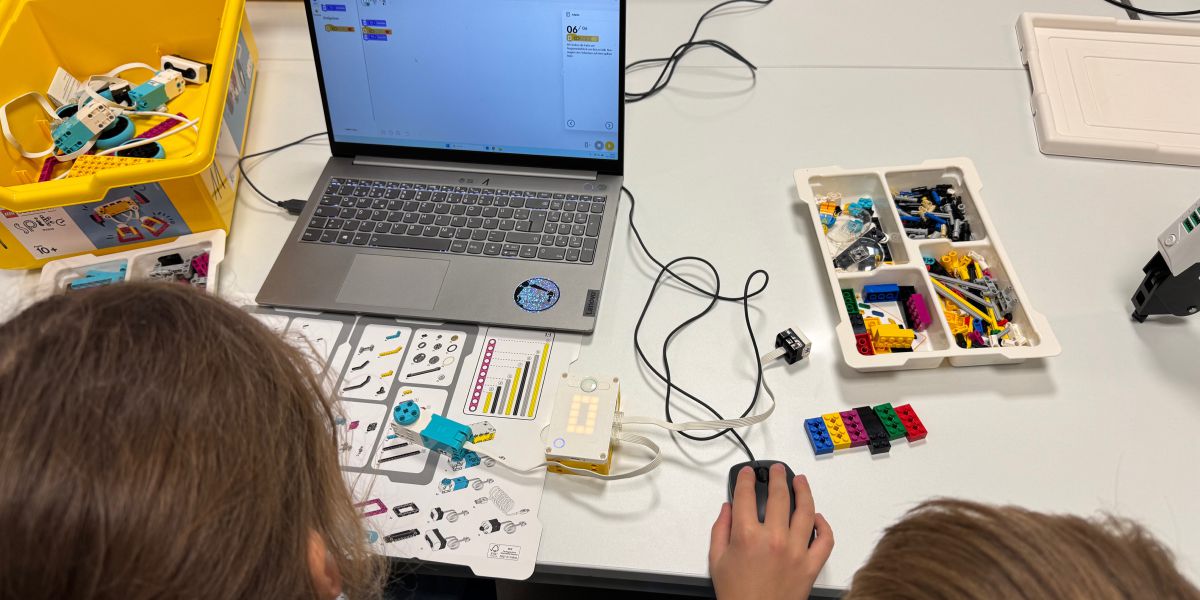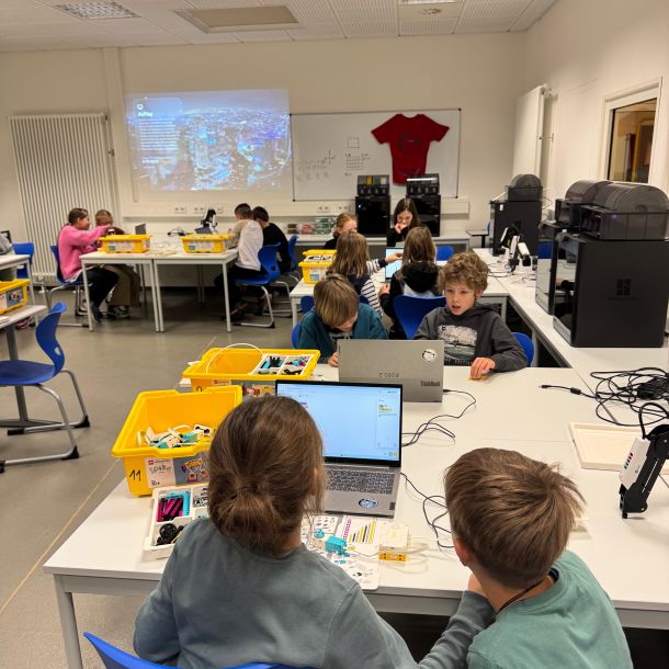 Am 07.11.2025 besuchte uns eine 3. Klasse der Grundschule Hogenkamp, um einen ersten Einblick in die Welt der Robotik mit Lego Spike Education zu erhalten.