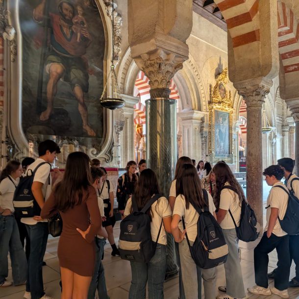 die viel Geschichte zu bieten hat. Besonders spannend sind die alten Gebäude und die wunderschönen Innenhöfe, die man überall entdecken kann. Zusammen haben wir die Mezquita de Córdoba besucht. Die Mezquita de Córdoba ist eine beeindruckende Moschee mit vielen Säulen und Bögen. In ihrem Inneren befindet sich eine Kirche, die im Laufe der Geschichte in das Gebäude integriert wurde und das besondere architektonische Erbe der Stadt zeigt.