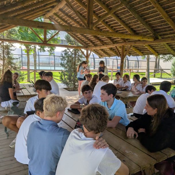 es pan con tomate (Brot mit Tomate) und frisches Obst – typische spanische Leckereien. Danach ging es schon los in Richtung Schule. Unsere Partnerschule, die Yago School, beginnt um 9:00 Uhr und endet um 17:00 Uhr, und wir Gastschüler durften zunächst mit unseren Gastkindern gemeinsam am Unterricht teilnehmen.