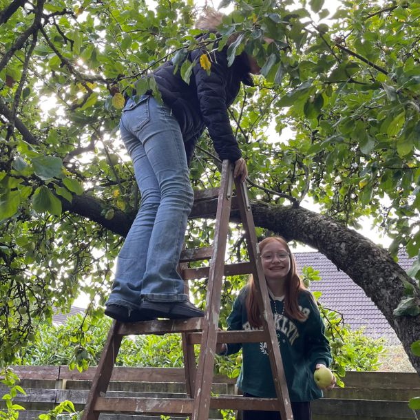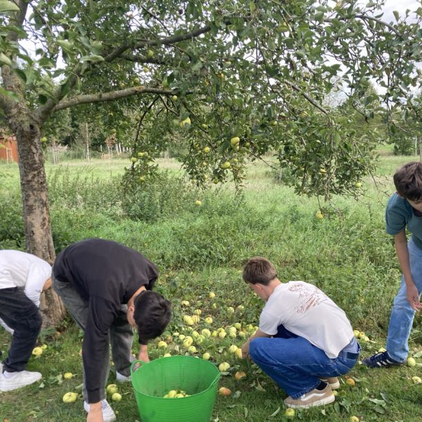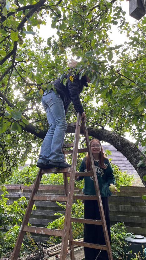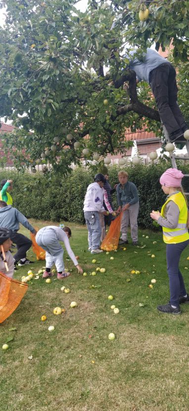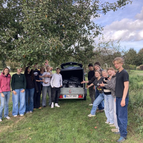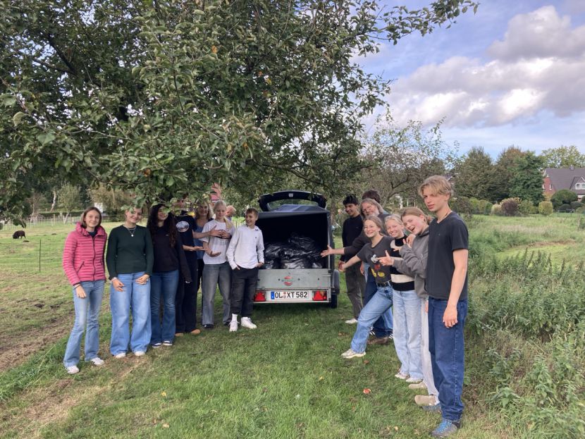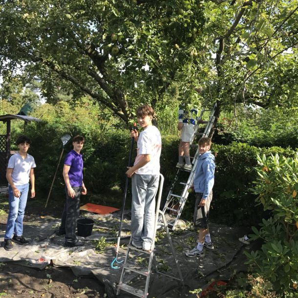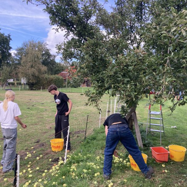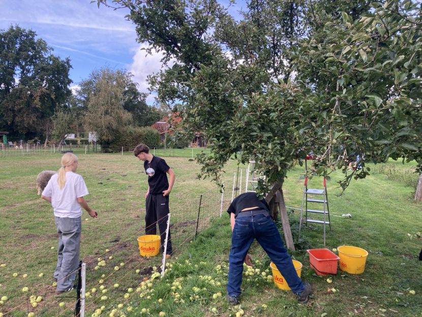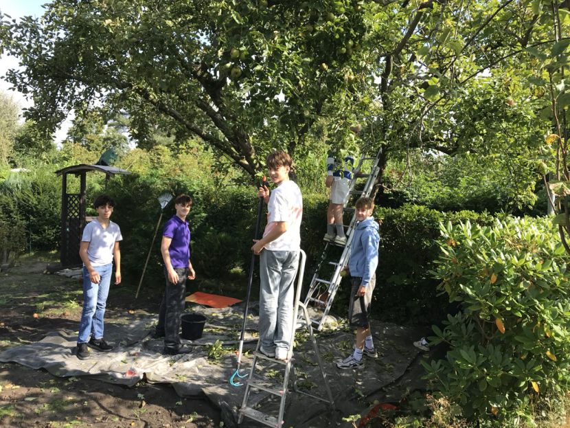 Die Schüler*innen der 6d haben in diesem Jahr wieder mit Frau Stalling Äpfel im Schlossgarten gesammelt, zudem in mehreren Privatgärten; während die Südafrika-AG sich voll auf eine private Streuobstwiese konzentriert hat und die Garten-AG Bäume bei benachbarten Kleingärtner*innen schüttelte.