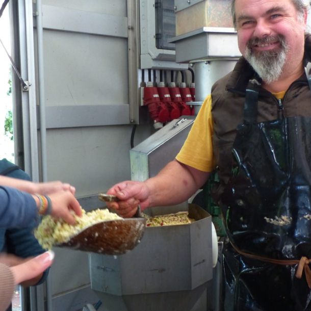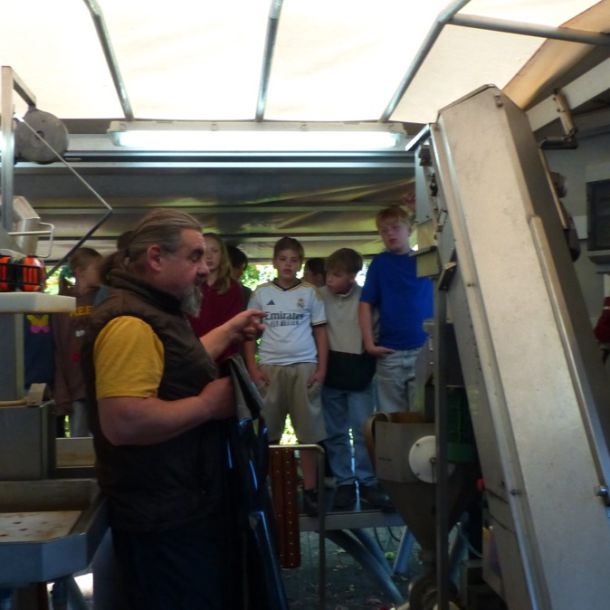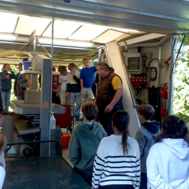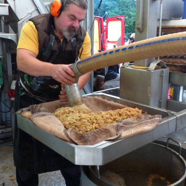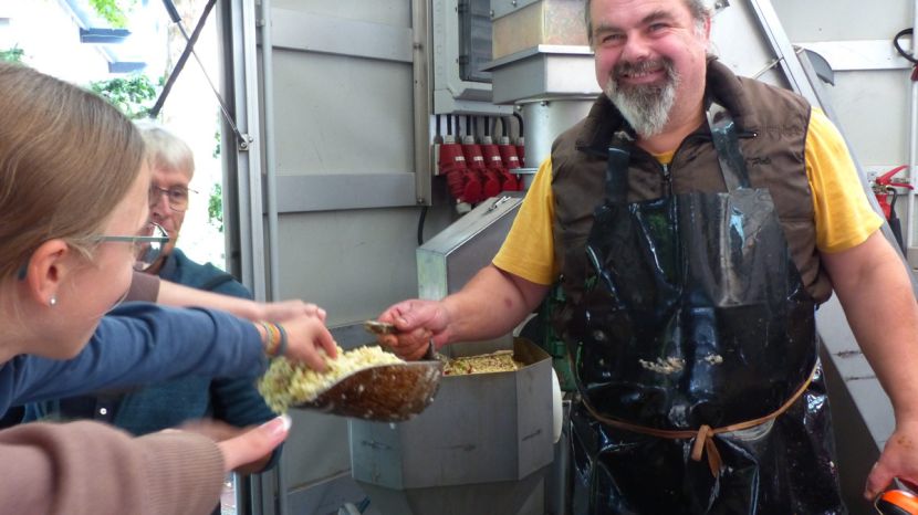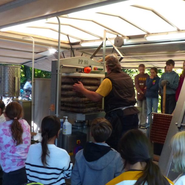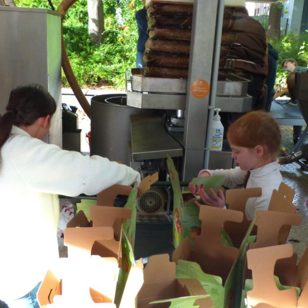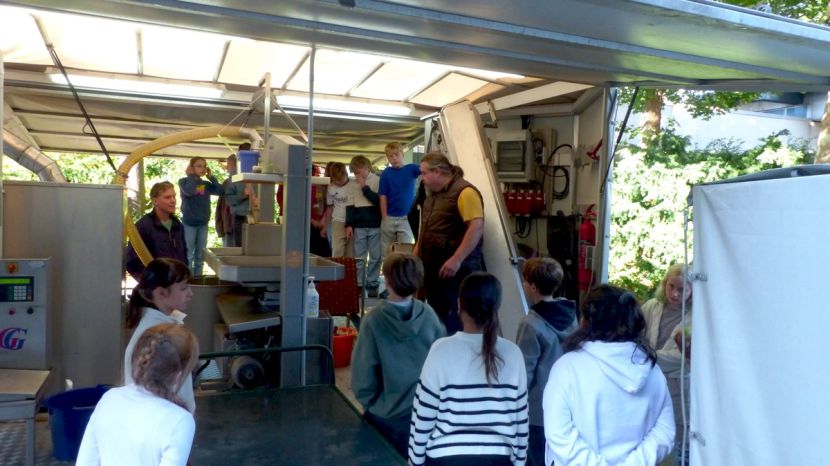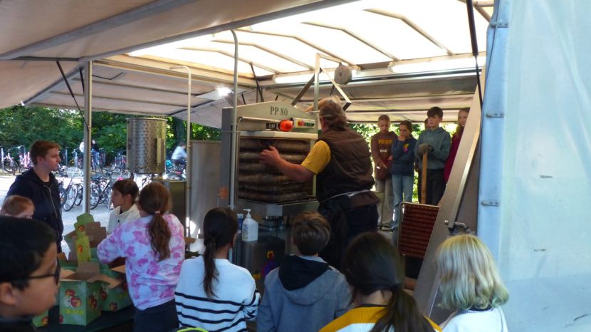 Durch das Zusammenwirken der drei Schulen und das außerordentlich gute Apfeljahr wurden beim Apfelfest für die Schulen ca. 3,5 Tonnen Äpfel zu ca. 1800 Litern Saft gepresst. Hinzu kamen noch mehr als eine Tonne Äpfeln von Privatpersonen, die am Nachmittag ebenfalls die Möglichkeit hatten, ihre Äpfel an der HLS pressen zu lassen. Für Ollis Saftpresse war es ein sehr langer Tag an der Schule, die er vor 40 Jahren selbst einmal besucht hatte, als er um 21 Uhr den Hof der Schule wieder verlassen durfte.