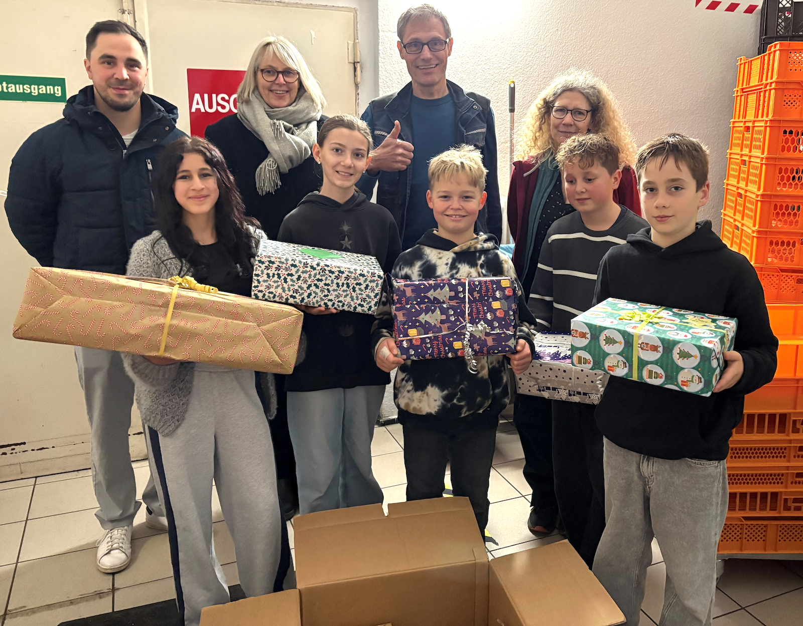 Was schleppend begann war dann doch ein beachtlicher Erfolg: Die Klassensprecherinnen und Klassensprecher aus dem fünften Jahrgang haben stellvertretend für ihre Mitschüler:innen 20 Umzugskartons randvoll mit Weihnachtspäckchen an die Oldenburger Tafel übergeben, die dort von den ehrenamtlichen Mitarbeiter:innen mit einem herzlichen Dankeschön entgegengenommen wurden.