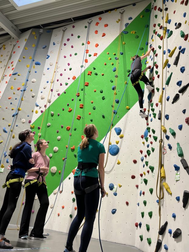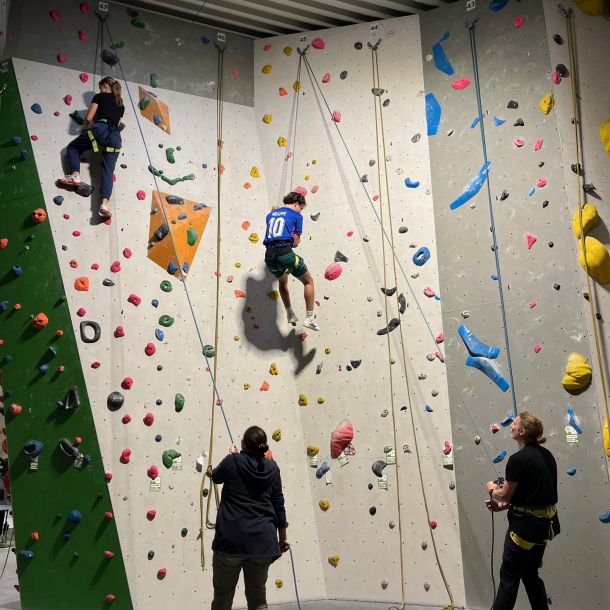 Statt gewöhnlichem Sportunterricht war der Ausflug der 11 b ins UP-Kletterzentrum Oldenburg eine tolle außerschulische Erfahrung. Zwei Stunden durften alle, die bis zum Ende noch Power besaßen, hoch hinaus. Aufgrund der tollen Unterstützung von zwei Lehrkräften und zwei Schülerinnen konnten alle viel und intensiv klettern. Da blieb am Ende nur ein bisschen Zeit zum Bouldern und so manchem fehlte am Ende die Kraft. ;-)