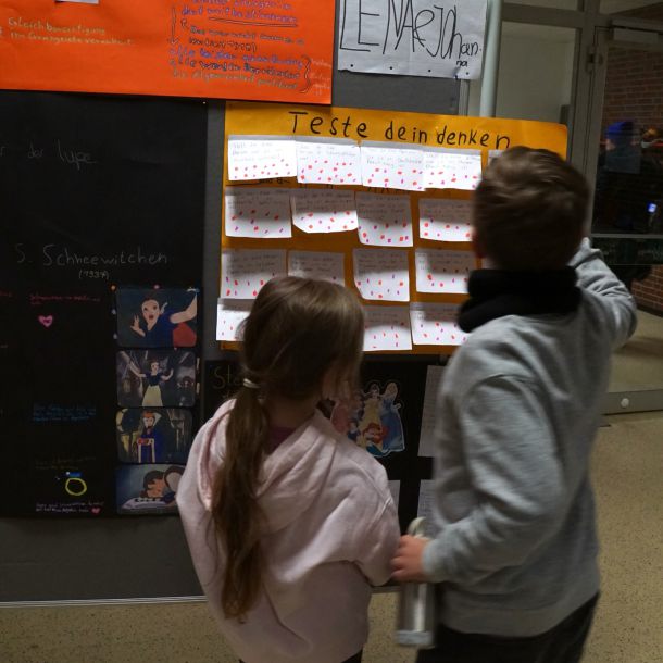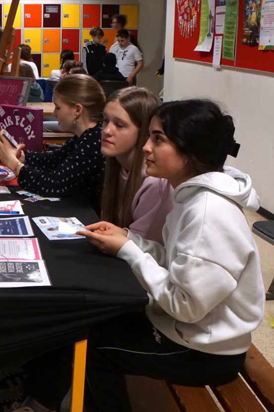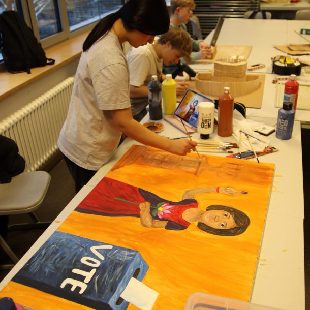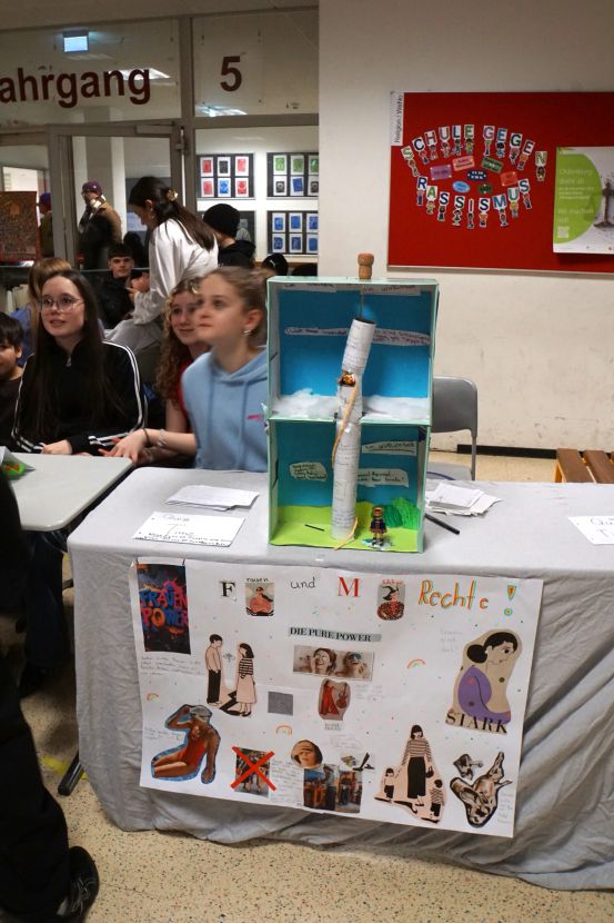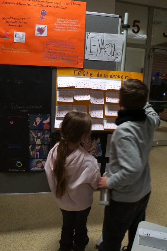 Was hat Demokratie mit mir zu tun, welche Fragen und Wünsche habe ich? Zum Abschluss des ersten Halbjahres arbeiteten alle Schüler:innen der Sek.I an selbst gewählten Schwerpunkten rund um Demokratie. Die Themenvielfalt war äußerst groß und im Gebäude herrschte vier Tage lang eine besondere Atmosphäre. Wie schön, dass am Donnerstagnachmittag viele Eltern und Gäste der Einladung gefolgt sind, die vielfältigen Ergebnisse in der Abschlussausstellung mit uns zu bewundern.